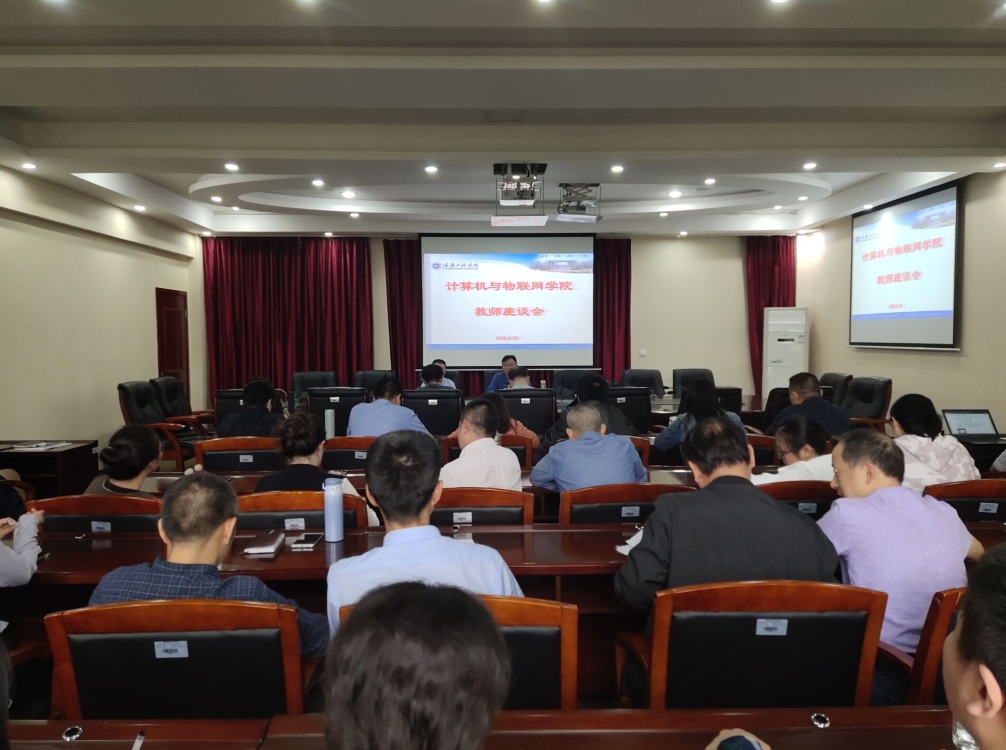 本网讯(文/罗桓 图/苟亚唯)2020年9月23日下午3点30分,计算机与物联网学院在第七会议室召开教师座谈会,深入了解教师的思想、工作和生活现状,进一步听取收集教师关于师德师风建设和教书育人、提高教学质量、加强专业建设、提高教科研水平等方面的意见建议。会议由杨国才院长主持,全院教职工参加了会议。