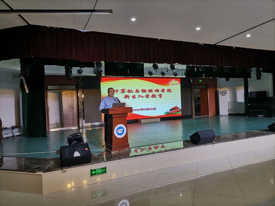 本网讯(文/图 李波)2020年9月25日14:00时,计算机与物联网学院杨国才院长、名誉院长王志良、书记覃华伟、院长助理李波一行到双桥校区对学院2020级新生进行了入学教育。