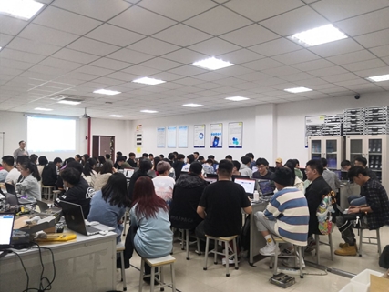 本次培训由我院物联网工程学科带头人宋文强教授授课。宋教授的课程深入浅出,他总能举出许多生动有趣而又贴近生活实际的应用实例,让枯燥难懂的技术问题变得易于理解。同学们很享受这个过程,就连下课时间也不愿错过。在宋教授的带领和三位18级学长的热情相助下,本次培训取得圆满成功。