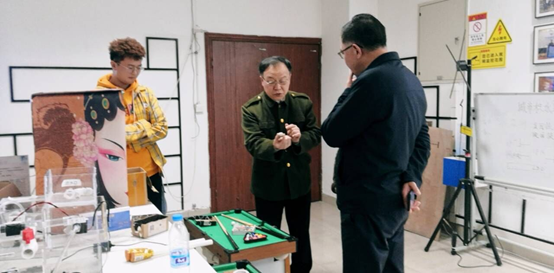 利用业余时间正在指导学生的宋文强教授向桂校长介绍了中心正在开展的其他一些制作项目。桂校长对中心第二课堂取得的竞赛成绩和育人效果给予了充分肯定。相信在各级领导的关怀和支持下,物创中心将会持续为学院培养出理论基础扎实、实践能力过硬的合格工程师,展现重工学子风采