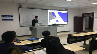 黄老师首先讲解现在行业趋势和自身的行业经历,并现场展示了大四的学姐学长们在专业综合项目实训课程中的项目小视频,让同学们切身感受专业知识的实际运用成果。