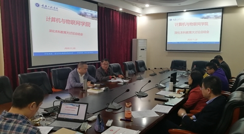 本网讯(文/韩梦杰 图/罗桓)11月20日下午, 计算机与物联网学院在原办公楼第二会议室召开深化新时代本科教育教学思想观念讨论会。会议围绕“坚持思想武装、价值引领,坚持问题、目标导向,聚焦重点、难点,结合内外需求,集思广益、群策群力”等重点,扎实开展我校“新时代本科教育思想大讨论”。