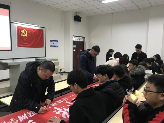 纪录片观看结束后,由学生党支部小组分别以诗朗诵、分享故事会等方式表达了自我思想与体会,激发了我们心中的爱国情怀,也增强了民族自尊、自信和自强精神。简单地介绍了南京大屠杀遇难同胞纪念馆后,预备党员及党员代表上台进行了发言,倡导每一名中国人都应牢记历史,以史为鉴,弘扬爱国主义,弘扬民族精神。最后,在王浩舟同志的带领下,全体同志起立,面向党旗庄严宣誓“勿忘国耻,砥砺前行”,并在纪念横幅上签字留念。