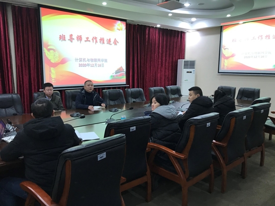 本网讯(文/图 潘晓宇)计算机与物联网学院于2020年12月16日组织召开了班导师工作推进会,会议由党总支书记覃华伟同志主持,列席会议人员有:副院长谢箭、办公室主任罗桓,各系系主任。