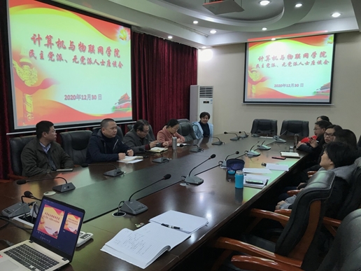 本网讯(文/图 潘晓宇)计算机与物联网学院于2020年12月30日组织召开了民主党派、无党派人士座谈会,认真听取各党外人士对学院发展、学院领导班子的意见和建议。会议由党总支书记覃华伟同志主持,列席会议的有:院长杨国才同志;党总支班子成员;民主党派人士谢正兰;无党派人士代表王慧英、叶敏、宋馨来等老师。