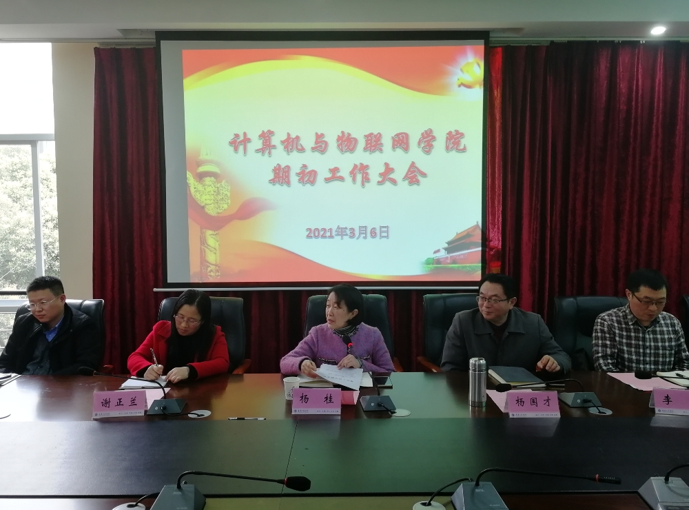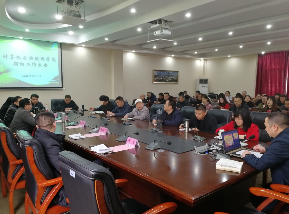 本网讯(文/图 罗桓)2021年3月6日下午,计算机与物联网学院在学校第七会议室召开学院期初工作会议,部署新学期工作。校长助理杨桂出席会议,学院领导及全院教职工参加了会议。会议由党总支书记覃华伟主持。