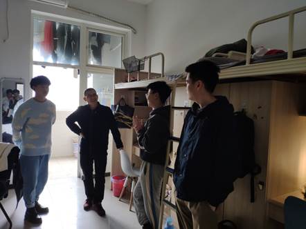 为了和同学们更好的打成一片,加深感情,官节福老师于2021年4月7日13:00-15:00到和园4号参观了男生宿舍。