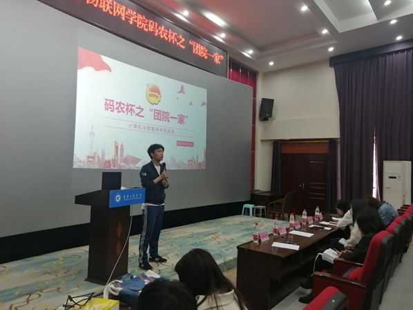 本网讯(文/图 吴玲 彭文军)2021年是中国共产党成立100周年,是我国开启全面建设社会主义现代化国家新征程、向第二个百年目标进军的第一年,当代青年生逢其时、重任在肩。为大力弘扬“五四”精神,深入学习贯彻习近平新时代中国特色社会主义思想、党的十九大和十九届二中、三中、四中、五中全会精神,持续纵深推进共青团改革,激励全院各级团组织和广大团员、团干部矢志不渝、艰苦奋斗,在新时代新征程中奋勇争先、建功立业,以优异成绩庆祝建党100周年,根据相关文件,决定开展2020—2021学年“优秀团支部与五四红旗团支部”评优工作。为大力弘扬“五四”精神,激励全院各团支部和团员矢志不渝、艰苦奋斗,宣传我院优秀团支部风采,重庆工程学院计算机与物联网学院于2021年4月19日12时30分在行政报告厅举行“码农杯之五四评选”的答辩大赛。参加本次活动的有计算机与物联网学院团委书记张景冬,团委副书记郑阳春,2019级辅导员及各位参赛2018、2019级团支部答辩人及团支部应援同学。