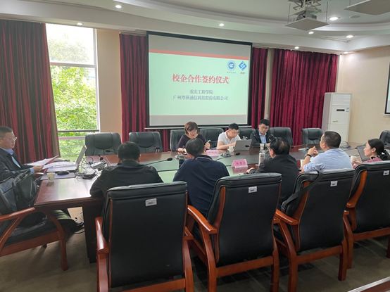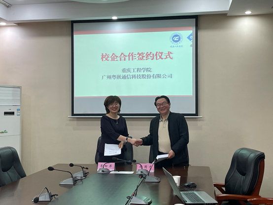 本网讯(文/图 潘晓宇)产教融合、校企合作是职业技术教育的灵魂,大力促进产教融合、校企合作、工学结合是职业技术教育工作的重中之重,重庆工程学院作为一所致力于培养应用技术性人才的高校,十分重视校企合作,产学研基地的建设。2021年4月28日,重庆工程学院计算机与物联网学院与广州粤嵌通信科技股份有限公司就校企合作达成一致,并举行了签约仪式。此次签约仪式由计算机与物联网学院谢箭副院长主持,参会人员有计算机与物联网学院院长杨国才、副院长李波、书记覃华伟、就业科长魏克非、计科系主任万川梅与专任教师曾迪以及粤嵌公司代表李盼弟经理及其工作人员。