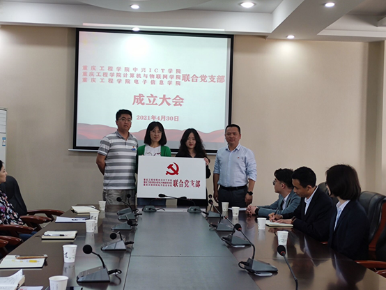 本网讯(文/图 潘晓宇)为进一步加强党建引领作用,结合党建促共建促发展的原则,通过搭建联合支部,推动党建工作和校企融合,进而实现实践基地各项任务又好又快发展。2021年4月30日,计算机与物联网学院、电子信息学院以及中兴ICT学院组织召开了联合支部成立大会。会议由计算机与物联网学院党总支书记覃华伟同志主持,参会人员由电子信息学院党总支书记谭思宇同志、计算机与物联网学院组织员潘晓宇同志,计算机与物联网学院黄浩茹同志,计算机与物联网学院梁益建同志,中兴ICT学院石如玉同志及其他工作人员。