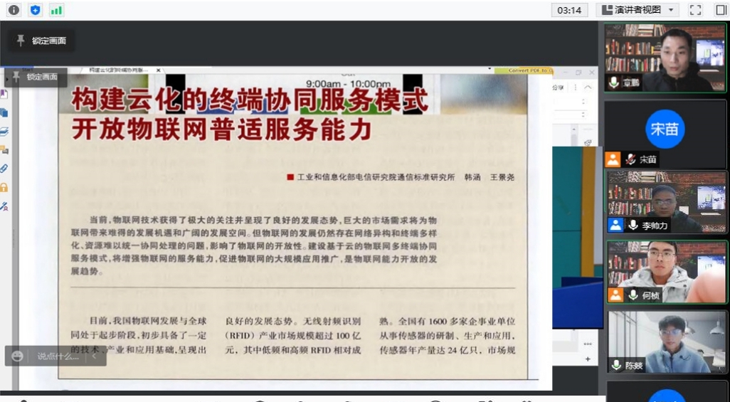 本网迅(文/图 宋苗)2021年4月15日,中国广电重庆网络有限公司信息化规划主管章鹏在腾讯会议为物联网工程系全体教师做了关于“构建云化的终端协同服务模式开放物联网普适服务能力”专题讲座。