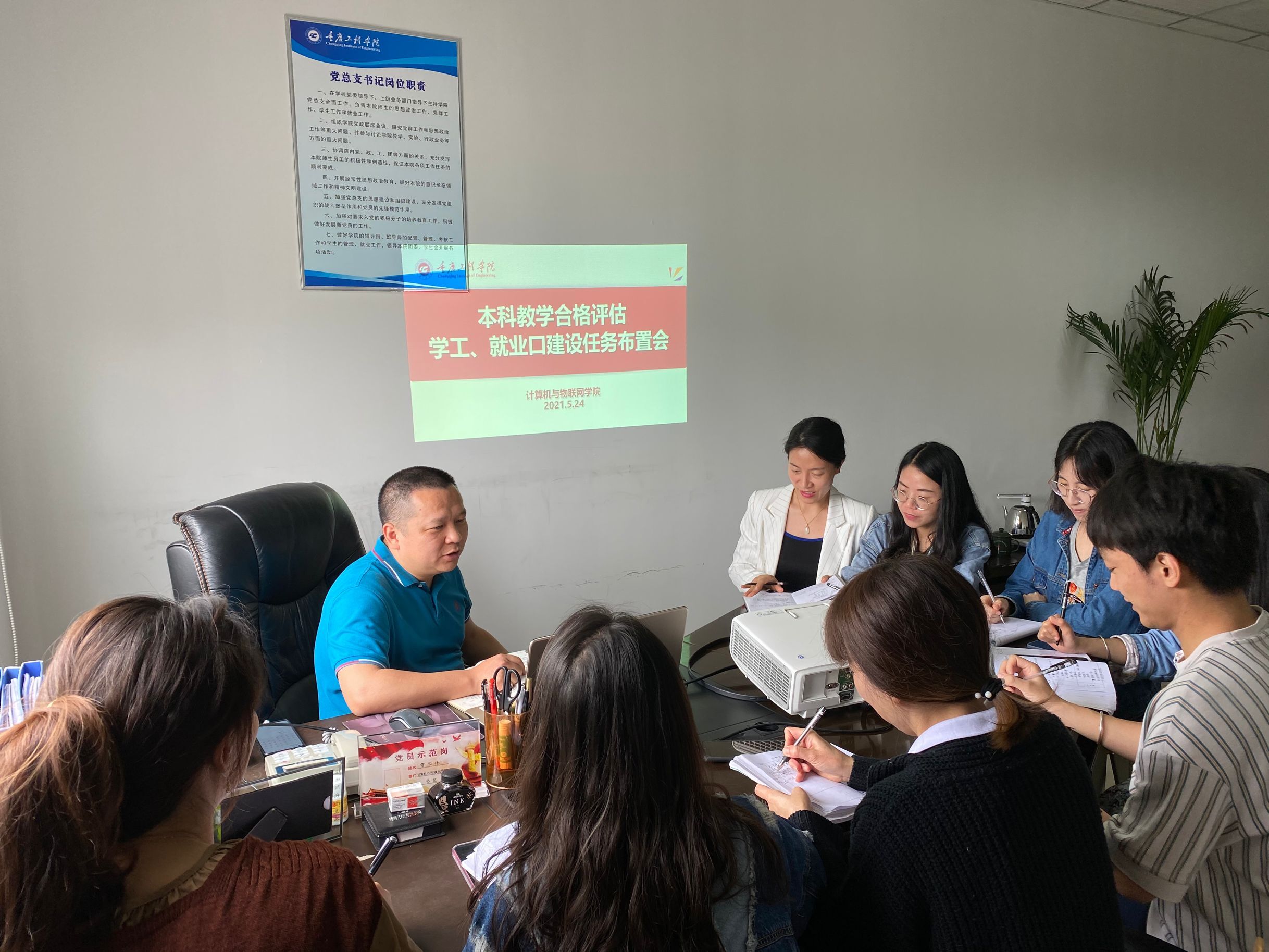 本网讯(文/图 张景冬)计算机与物联网学院学工科、就业科在2021年5月24日上午10点召开了本科教学合格评估学工、就业科口建设任务布置会。会上我院党总支书记,学院副院长覃华伟代领老师们整体学习评估任务要求,并将学生处细分到我院的评估任务进行了学习和布置,对二级学院各考察点进行了学习、分析。老师们也对有疑问的地方和还不清晰的地方进行了询问和讨论,现场气氛热烈,问题讨论激烈,通过此次布置会我院学生科和就业科均充分学习了合格评估工作任务,明确了工作要求,我院将不断围绕本科合格评估工作开展工作,以评促建,统一思想,将主要精力投入到评建工作中!