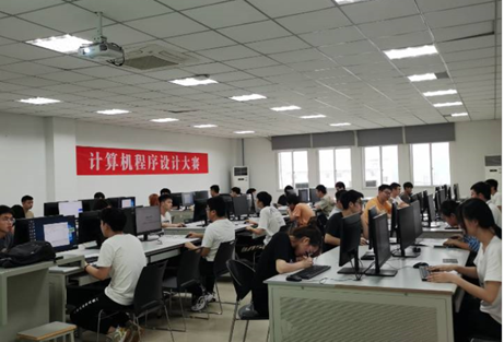 由于计算机程序设计大赛具有较强的专业性,比赛主要面向计算机与物联网学院的学生,也有其他兄弟学院的选手参赛,整个考场座无虚席、秩序井然。大赛历时3个小时,一共5个试题,共100分;每题给出测试数据和测试样例。同时,本次比赛支持参赛选手选用C/C++,Java,Python中的任何一种参赛。考场上,参赛者们进行激烈角逐,认真思考,沉着应战,比赛紧张而有序地进行。监考员秉承着公平,公正,公开,决不能有弄虚作假的态度监考。