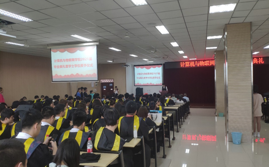 本网讯(文/魏克非、龚艺平 图/胡锦舟) 为祝贺2021届全体毕业生顺利完成学业,并授予合格毕业生工科学士学位。2021年7月2日9:00-12:00,计算机与物联网学院在第六教学楼302教室成功举办毕业典礼暨学士学位授予仪式。院长杨国才、党总支书记覃华伟等领导、全体教师及400余名2021届毕业生参会。