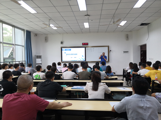 计算机应用系全体无课新老师准时参加示范课,本次李老师从第一章课后作业第9题单系统条件下,定量计算单道与多道运行处理器利用率的比较中,得出多道程序设计的优势,引出本次授课内容进程与线程,又通过讲解程序引出进程的概念,进程的基本状态及其转移条件,重点是如何运用Bernstein条件判断程序能否并发执行?如果满足并发执行,又如何保障程序的同步制约关系,本次示范课就此问题作为结束语,希望同学们课后思考,作为下一章重点解决的问题之一。