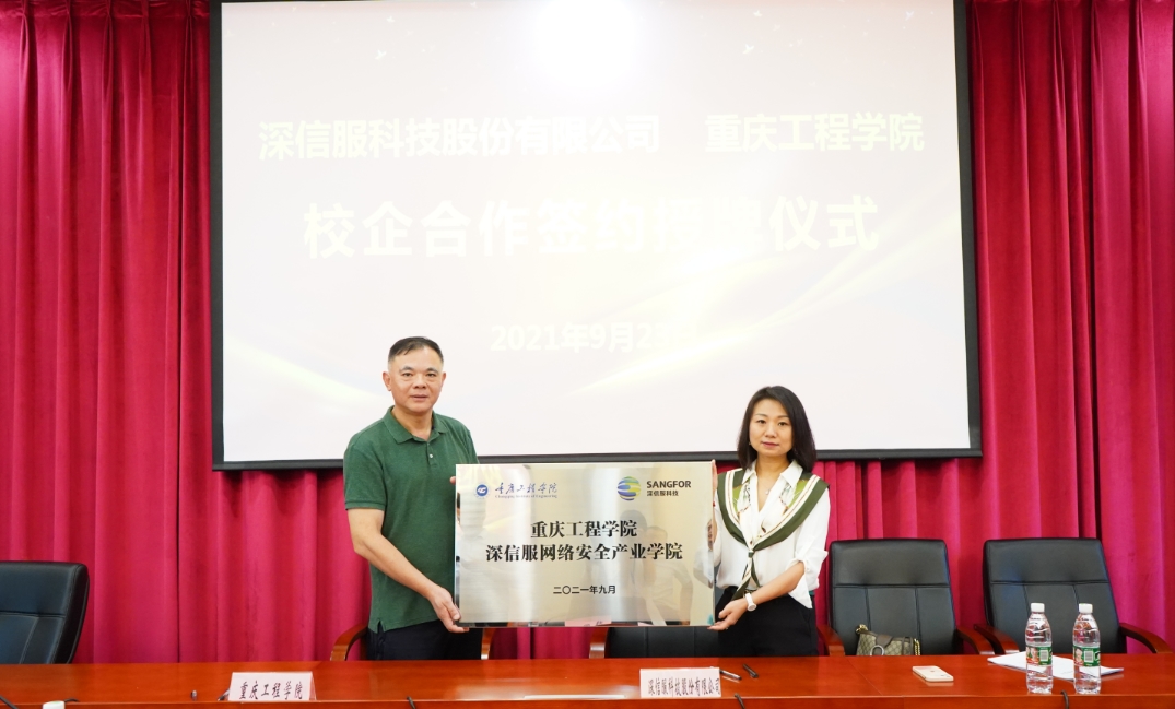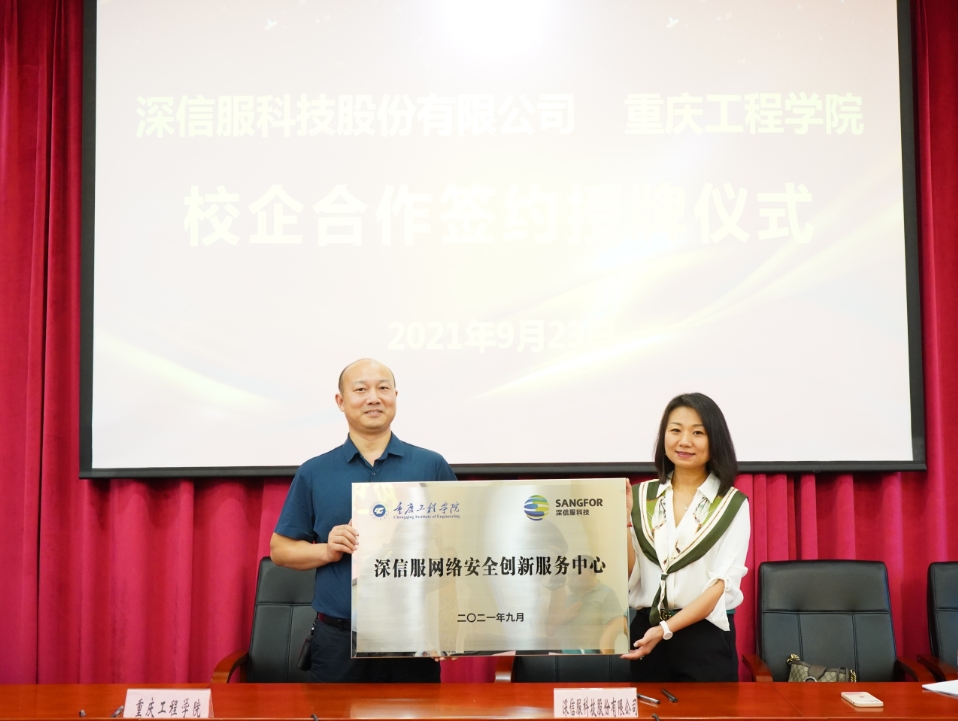 签约会议上,双方就加强人才培养、优化校企合作等方面进行深入交流。桂校长介绍了学校的办学模式、办学特色,表示以此次校企合作签约为契机,与深信服公司开展更深层次、更宽领域的沟通合作。希望双方通过此次合作,能共架合作之桥、共铺互利之路、共绘发展蓝图,构建双方共赢的局面,结出融合发展的丰硕成果,为双方事业加快发展形成强大动能,共同为国家经济社会发展蓄势赋能。随后,李洋副总裁高度评价了重庆工程学院近年来的办学成果,也对此次成功签订校企合作协议表示祝贺。并表示公司将与校方一起积极探索产教融合的新路子,更好地为社会、为企业培养高素质的应用型人才。