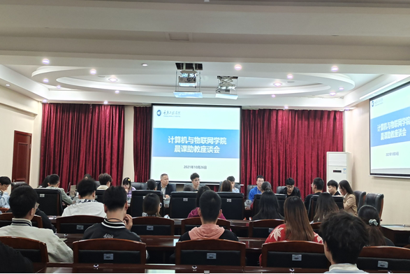 本网讯(文/图 陈燕)为深入了解20级各班级晨课的课堂具体情况及晨课助教近期工作状况;总结前两轮晨课开展期间出现的问题,提出解决办法,以提升晨课的质量。2021年10月26日19:00,,计算机与物联网学院在办公室二楼第二会议室成功开展了本学期第一次晨课助教座谈会。计算机与物联网学院书记覃华伟,20级辅导员郑阳春、张景冬、张运,晨课指导老师邢美喆出席本次座谈会,20级全体晨课助教参会。