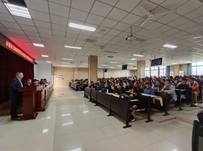 本网讯(文/魏克非 图/张广)为进一步激发2022届毕业生就业热情,部署校外实习、毕业设计及就业管理有关工作,我院于2021年10月27日下午在6302报告厅召开了“2022届毕业生实习毕设暨就业动员会”。出席此次大会的领导有学院李发陵院长、学院党总支书记覃华伟书记、李波副院长、万川梅主任、杨业令主任和宋苗主任、教务科秦旗科长、就业科魏克非科长、2022届辅导员唐贵仙老师和郝恬老师、毕业班班导师及全体毕业设计指导教师,400余名2022届毕业生参加了此次会议。