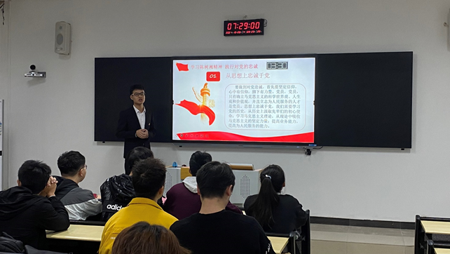 本网讯(文/图 潘晓宇)为充分发挥学生党员的引领示范作用,引导广大同学心系党和国家的前途和命运,坚持正确的政治方向引领。2021年10月28日,计算机与物联网学院学生党支部开展了以“党员展风采,引领促成长”为主题的党员下晨课活动。