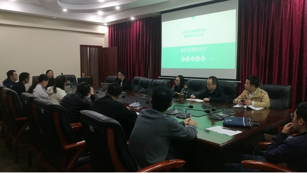 本网讯(图/文 涂洋)根据《计算机与物联网学院2021-2022学年第一学期新教师培养培训方案》,2021年10月28日中午,计算机与物联网学院在学院二楼会议室组织召开了“说课”主题培训讲座。讲座由秦旗老师主讲,教师工作坊2班-琢玉班17位新教师及学院全体新教师参加。