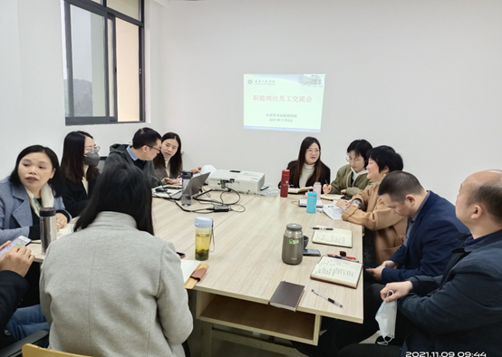 学院领导及各部门负责人参加了交流会,肯定了职能岗位员工的工作并提出了改进的建议。