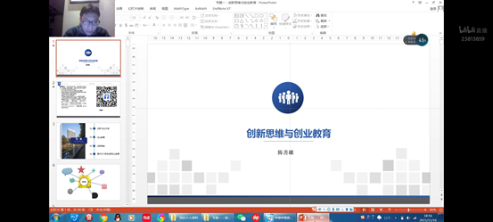 本网讯(文/图 孙令翠)为进一步加强学生创新思维,激发学生勇于创新,独立创业的主动性和积极性,提高学生创新、创业能力以及实践能力,促进同学们就业创业行动的广泛开展。2021年11月16日,计算机与物联网学院特邀西南大学陈善雄教授,在线上开展以“创新思维与创业教育”为主题的创新创业专题讲座活动。社团指导老师计算机学院朱世宇和孙令翠老师主持。