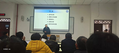 首先,李波副院长讲解了重庆工程学院教学事故分类和级别认定标准,在本学期的最后阶段,让老师们最好最后的试卷批阅等工作,并引起高度重视。其次,从监考过程,多次强调需要提前30分钟领取试卷及相关资料;阅卷工作相关注意事项;成绩录入的规范和注意事项;试卷分析的梳理,是根据试卷学生的考试情况,来总结学生的学习情况,和我们的教学大纲做比对(不是照搬教学大纲),我们的教学任务是否达成。最后,由郭老师,对教学试卷文件的归档的注意事项,尤其是文件袋的填写规范,文件袋中的资料需要收齐全。