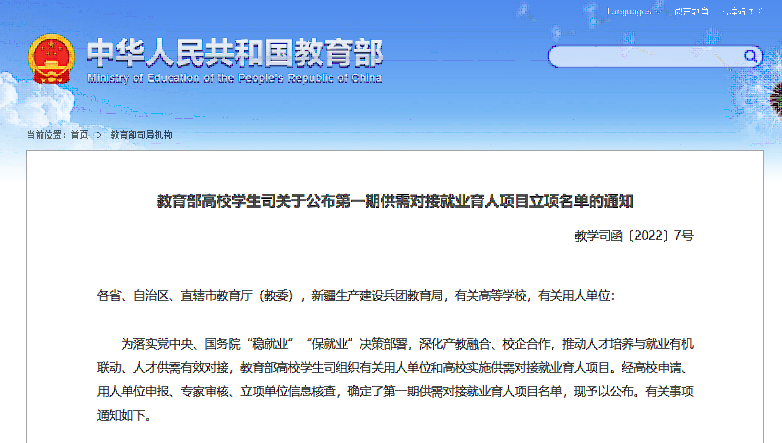 (网址:http://www.moe.gov.cn/s78/A15/tongzhi/202204/t20220406_614176.html)