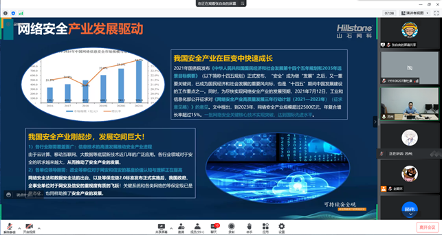 本网讯(文/图 魏克非)为让同学们了解网络工程行业的就业形势及岗位要求,掌握基本的职场礼仪,树立正确的职场观,提前做好就业准备,2022年4月21日,我院通过“腾讯会议”线上组织就业指导讲座。此次讲座主题为《择己所长,择世所需-让梦想起航》与《网安新鲜人的职场观和职场初礼仪》,由山石网科网安人才能力研究中心负责人张自良和山石网科总裁助理崔清晨主讲,300余名大二、大三学生参加。