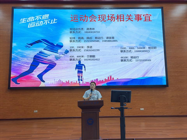 首先,本次会议由体育部负责人龚香琳发言,对全体运动员送出祝福,让运动健儿们在运动会前这几天注意保护自己的身体不要受伤并介绍运动会的后勤工作人员。接着,由运动员代表刘力源进行发言,表示在运动赛场上将文明参赛,敢于拼搏,奋勇当先,要发扬赛场上不到最后一刻决不放弃的精神。最后,覃华伟书记讲话,他对运动会参赛选手以及工作人员的辛勤付出表示感谢,着重强调运动会参赛选手要文明参赛,不要顶撞裁判,要求运动健儿们在运动会期间不但要友谊第一,比赛也要争第一,最重要的是不允许弃赛,如果由于身体原因导致不能参赛,需提前请假,不能无故弃赛。