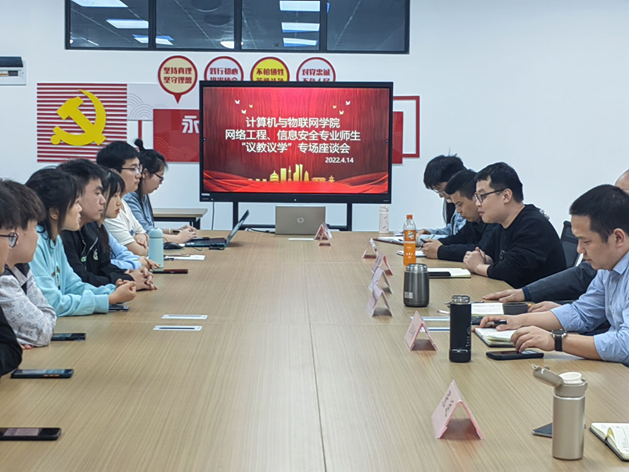 为进一步提高教学质量,促进师生关系,计算机与物联网学院于2022年4月14日下午在7806教室成功开展网络工程、信息安全专业“议教议学”座谈会。计算机与物联网学院院长李发陵、党总支书记覃华伟、分团委书记张景冬、系主任张杰、副系主任杨业令,代表教师:张运、邢美喆、包致婷、郭晖,以及各班派出一位学生代表共同参加。