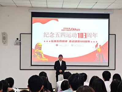 活动开始,由党小组同志宣讲和短片放映,带领同志们回顾了五四运动的背景、过程及历史意义。从巴黎和会上的外交失败到青年学生的示威游行,展现出中国青年追求民族独立和发展进步的强烈决心,让现场同志们在思想上接受五四精神的洗礼,激发同志们的爱国精神。再由党小组同志们带来朗诵,激扬慷慨的声音展现出传承五四精神的坚定决心和饱满热情,深切表达出在五四精神的感召下,青年一代承担起历史使命和时代责任的信念和决心。最后,覃华伟书记总结到:新时代中国青年要树立远大理想、热爱伟大祖国、担当时代责任、锤炼品德修为,自觉树立和践行计算机与物联网学院码农精神,敬业、精业、专业。