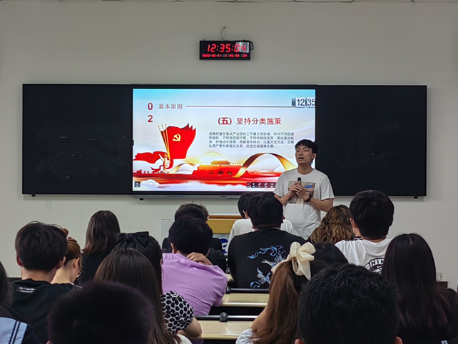 张景冬书记从工作背景、工作原则、工作任务等方面解读并传达了学校团委“六查六问”专项行动要求,并希望大家认真学习,结合实际将行动落到实处。紧接着,张景冬书记提出团支部存在的问题,并对整改措施、发展方向做出详细规划,呼吁全体学生共同致力于团的作风建设。最后,张景冬书记从“干部”一词的含义进行了深入解读,结合“六查六问”的六个方面,要求学生干部在政治、学习、工作、担当作为、作风、遵守纪律等方面起好带头作用,做到边查边改,以效促干。