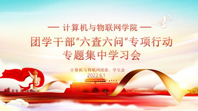 本网讯(文/田琼 图/任雨婷)为深入学习贯彻习近平总书记对团干部提出的系列重要要求,认真落实全面从严治团要求,2022年6月1日12:20计算机与物联网学院团委、学生会在第六教学楼113教室成功开展计算机与物联网学院团干部“六查六问”专题学习会。计算机与物联网学院分团委书记张景冬以及团委、学生会全体成员共同参会。