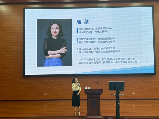 本次讲座荣幸邀请到了重庆爱恩嘉元教育科技有限公司董事长唐薇作为主讲人。唐董事长为我们详细地阐述了什么是情商,高情商的十大表现:不抱怨不批评、富有热情和激情、包容和宽容、善于沟通和交流、经常赞美别人、始终保持好心情、善于聆听别人说话、有责任心敢担当、每天进步多一点以及好东西善于分享,并悉心地为同学们讲解了如何提高职场情商,让同学们通过此次讲座进一步了解了职场情商的重要性,希望同学们通过此次讲座会在以后的学习和工作中管控好情绪,使自己时刻充满正能量。