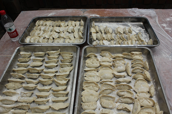 准备工作就绪后,同学们以小组为单位开始忙碌,辅导员张运老师也加入包饺子的阵营中,有经验的同学熟练地取面皮、拌馅料、包饺子,一气呵成,十指翻飞之间,一个个精巧的饺子就在灵巧的手中诞生。在师生的互相支持和共同努力下,饺子很快就包好了。整个活动过程中大家其乐融融,在劳动中分享经验,在协作中交流感情。同学们通过自己的实践明白了粮食的来之不易和重要性。 此次活动提高了同学们爱粮节粮的意识,同时也增进了队伍之间的感情,让此次“三下乡”社会实践活动更添一份相亲相爱与团结和睦。