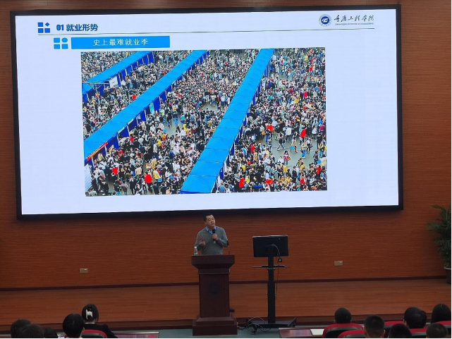 魏老师从“就业形势”和“就业方向”两个方面进行了讲解。他强调指出,只有做好充分、扎实的准备,才能在职业发展上越战越勇;他结合自己的经验,分析了未来的就业方向。同时,魏老师还向同学们讲解了就业的流程、具体方法和工具。魏老师的授课精彩纷呈,同学们认真听讲,气氛热烈,效果良好。