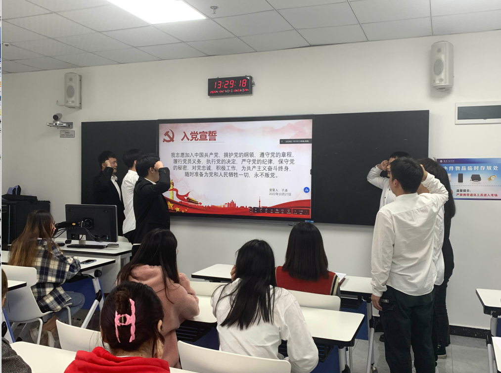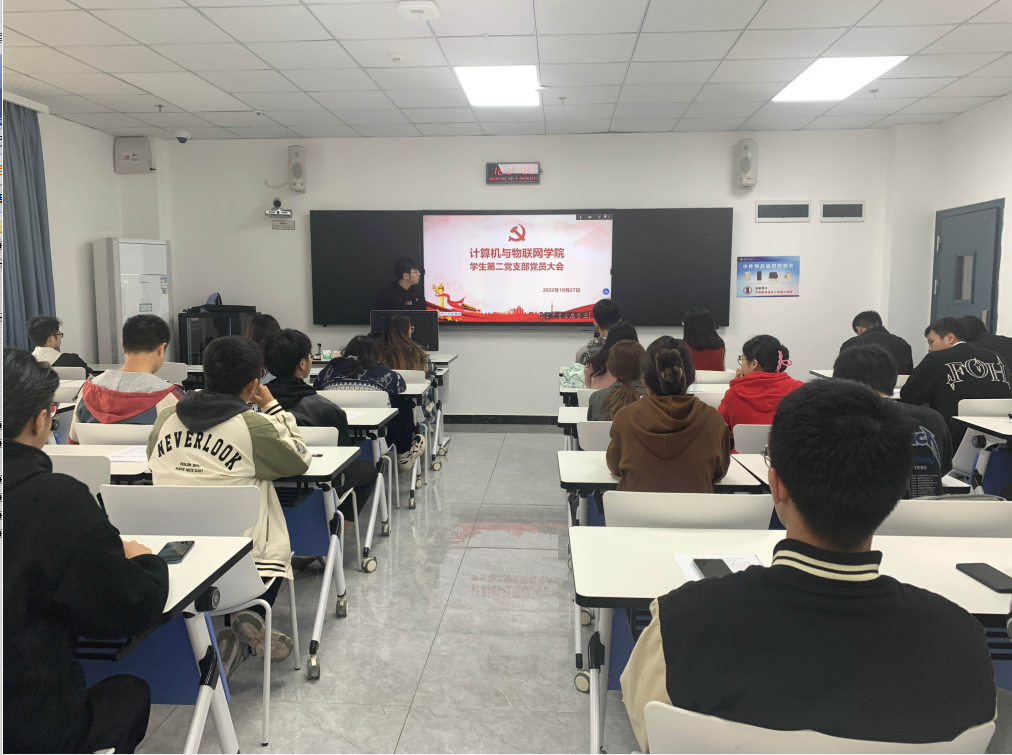 为了进一步加强党员队伍建设,吸收新鲜血液,使组织力量更充实,2022年10月27日中午,计算机与物联网学院学生第二党支部组织全体党员在第七教学楼710召开了支部党员大会,讨论向川等8名同志发展对象吸收为预备党员等问题。第二党支部书记郑阳春、第二党支部组织委员张运参加会议,会议由曾禧同志主持。