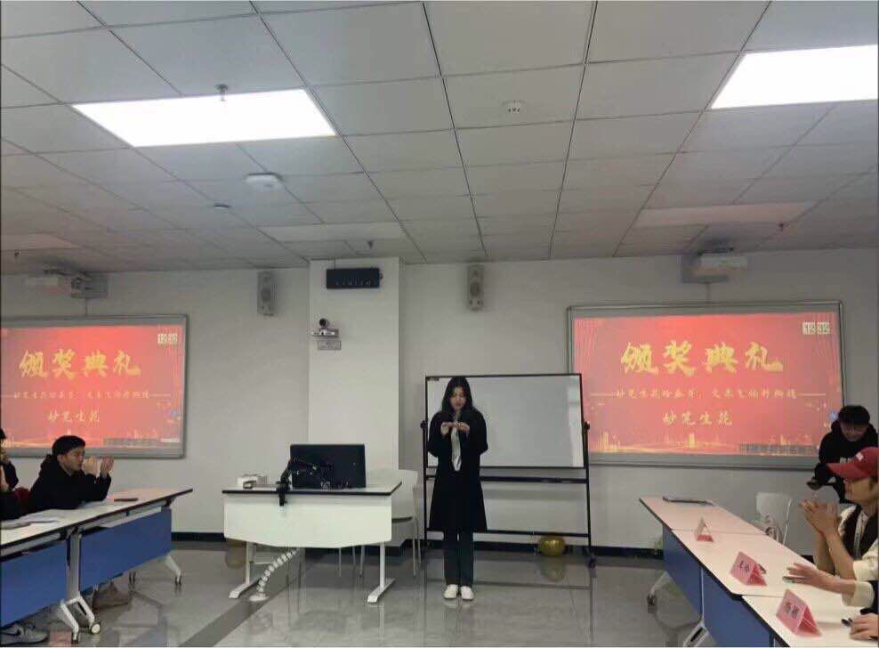 颁奖典礼上,获奖作品作者代表通过朗读展示优秀作品,为同学们展示了良好的文学素养,在互动环节开展了 “诗歌碰碰碰”的小游戏,让同学们感受到文字的乐趣。辅导员老师们为获奖同学颁发了荣誉证书,教师代表尤洋、王玲两位老师也对妙笔生花活动进行了总结发言,肯定了本次活动的重要意义,并给予获奖同学的高度赞扬,希望同学们继续创作更优秀的作品。
