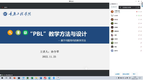 本网讯(文/图 吴海峰) 11月25日,计算机与物联网学院通过腾讯会议开展了新教师集中培训,培训主题是“PBL教学方法与设计”。由孙令翠副教授主讲,学院全体新入职教师参加。