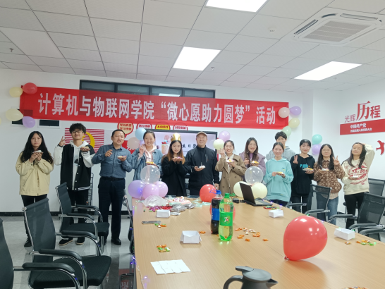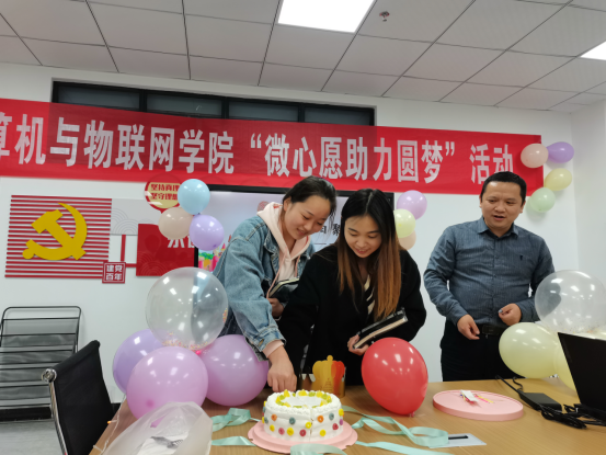 “疫情封校不封爱,你的生日我来过”为了陪伴每一位学生,让学生在封校期间也能度过暖心的大学生活,2022年11月28日晚,计算机与物联网学院学生第一党支部组织开展了“微心愿”助力圆梦活动,支部书记梁甜老师带领支部同志做了悉心准备工作,学院李发陵院长,覃华伟书记,更是为两位同学送上蛋糕和生日祝福。