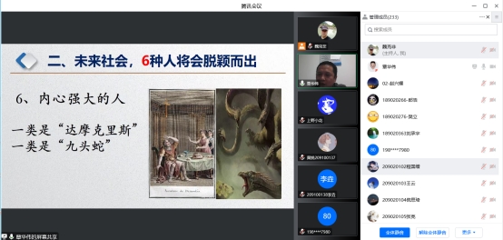 本网讯(文/图 魏克非 杨安进)为帮助同学们增强就业意识,提升职场“情商”,增强重工学子在职场上随机应变的能力,我院于12月5日、6日通过腾讯会议连续组织了2场组织主题为“初入职场‘啷个办’?”的就业指导讲座,400余名大三学生参加了此次活动。
