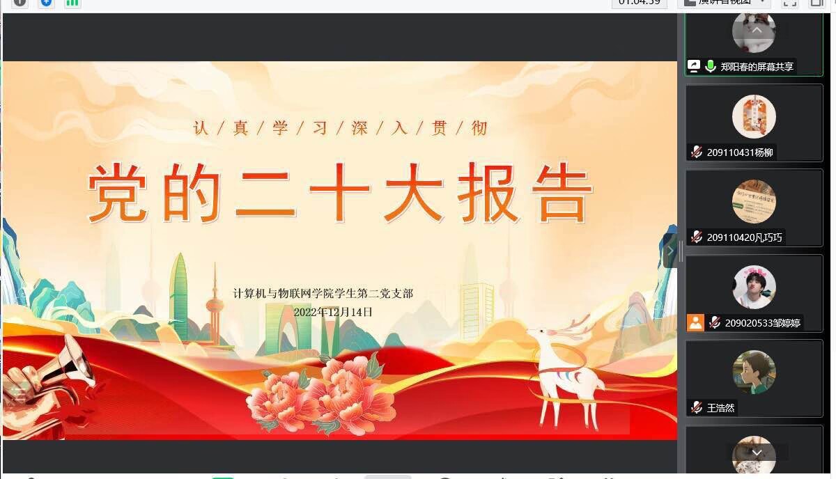 为了进一步加强党员队伍建设,吸收新鲜血液,2022年12月14日下午,计算机与物联网学院学生第二党支部于线上召开拟吸收预备党员大会,讨论石祖榆等7名同志发展对象吸收为预备党员等问题。第二党支部书记郑阳春同志参加会议,会议由凡巧巧同志主持。