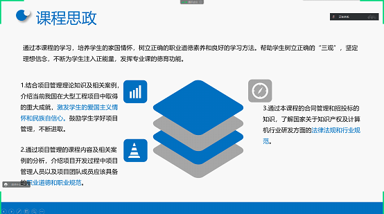 按照《项目管理(B)》课程教学进度计划表,第1周理论授课内容是第1章项目,内容包括课程介绍、项目的概念、项目的参与方、项目的特性、项目的基本要素和类型、项目与日常运营的关系,课程组重点就新课引入、内容组织、课堂研讨、思政融入、课后作业和教学后记做了充分研讨,大家一致认为,开学第一课主要介绍清楚课程相关内容、课程特点、学习要领、考核标准及本章主要内容。强调一定要严把课堂和课后思考练习环节,也是期末考试的必不可少的内容。