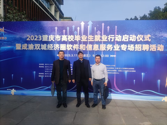 本网讯(文/图 魏克非)2023年3月17日上午,我院李发陵院长、就业科魏克非科长、软件与人工智能学院就来科长滕攀科长一行3人,带领150余名2023届毕业生赴重庆大学生就业创业公共服务中心参加了信息服务业“满天星”行动计划专场招聘会,并与参会企业进行的现场沟通联系,进一步拓展了就业渠道。
