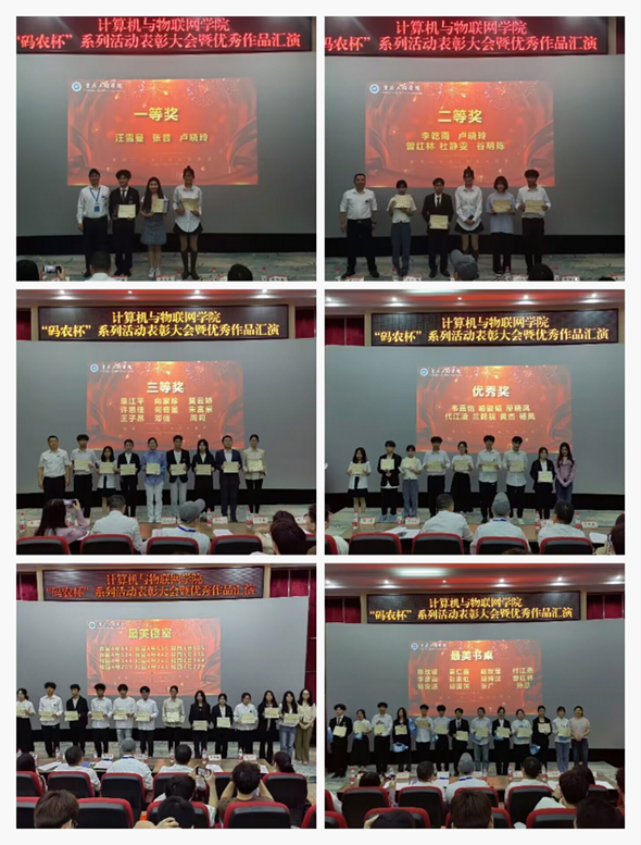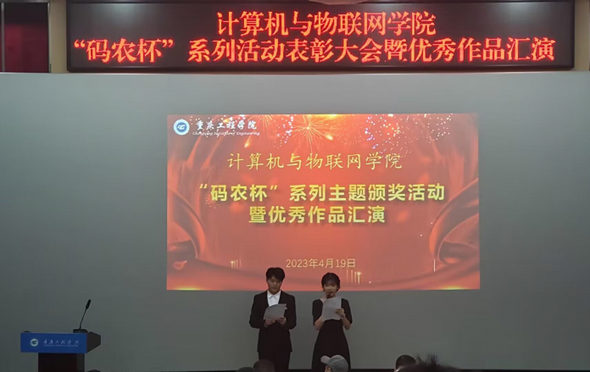 为表彰在“码农杯系列”创作活动中,获得优秀成绩的个人,鼓励同学们积极参加学院活动,在不断的实践活动中锻造自己。计算机与物联网学院于2023年4月19日15:30在阶梯报告厅举行“码农杯系列”主题颁奖暨优秀作品汇演活动。