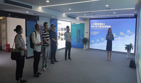本网讯(文/图 黄胜)2023年5月5日上午,在李发陵院长的带领下,黄胜助理、王慧英、胡轩、谢钱涛、邱屹柏老师一行6人走访了科大讯飞股份有限公司西南总部,交流校企合作事宜。