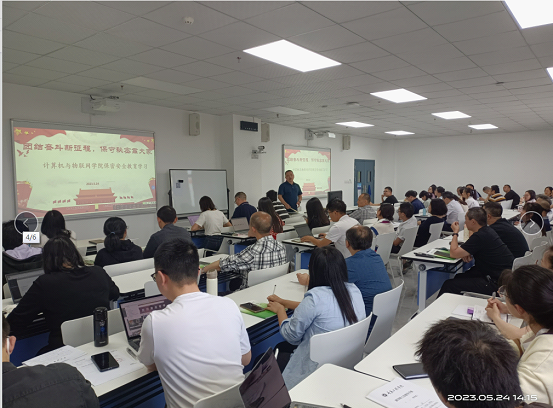 本网讯(文/图 罗桓)保密工作是维护国家安全和利益的重要工作。为加强学院教职工的保密意识,提高保密能力,增强保密观念,普及保密知识,5月24日下午学院在71101组织开展保密宣传教育知识培训,培训由学院党总支书记覃华伟主持,全院教职工参加了培训。