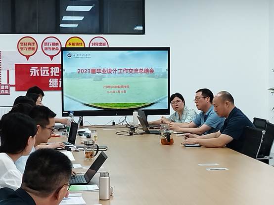 本网讯(文/图 王慧英 秦旗)为进一步规范毕业设计过程管理,提升学生毕业设计质量,计算机与物联网学院于6月20日在7806召开了2023届毕业设计工作总结交流会。会议由秦旗主持,李发陵院长、李波副院长、系部负责人及教师代表参加。