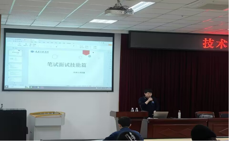 本次讲座由计算机与物联网学院实习基地教师冯宗福、唐世杰主讲,计算机与物联网学院20级全体学生参与其中,冯宗福老师主要讲授了面试准备,笔试现状、题型及内容,大厂与小厂的笔试区别,笔试的针对性准备了等课程为同学们解惑。